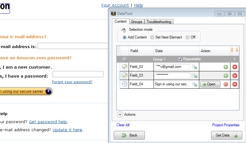 Below is a step-by-step instruction to fully automate the sign-in procedure for Amazon.com.