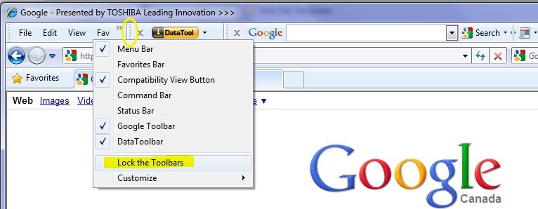toolbar area of Internet Explorer and make sure that the Lock the