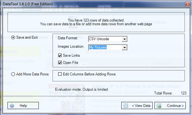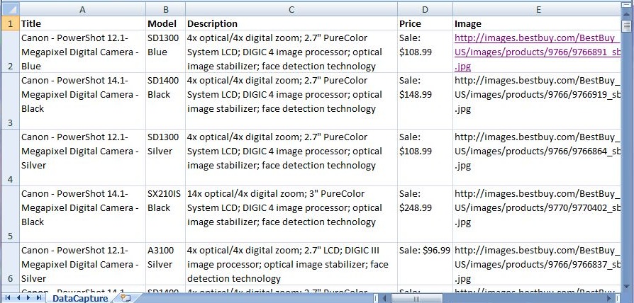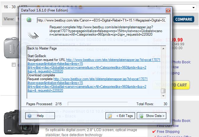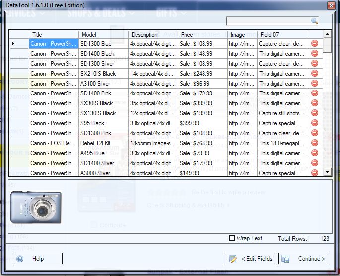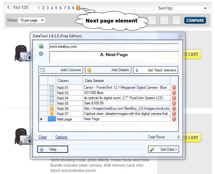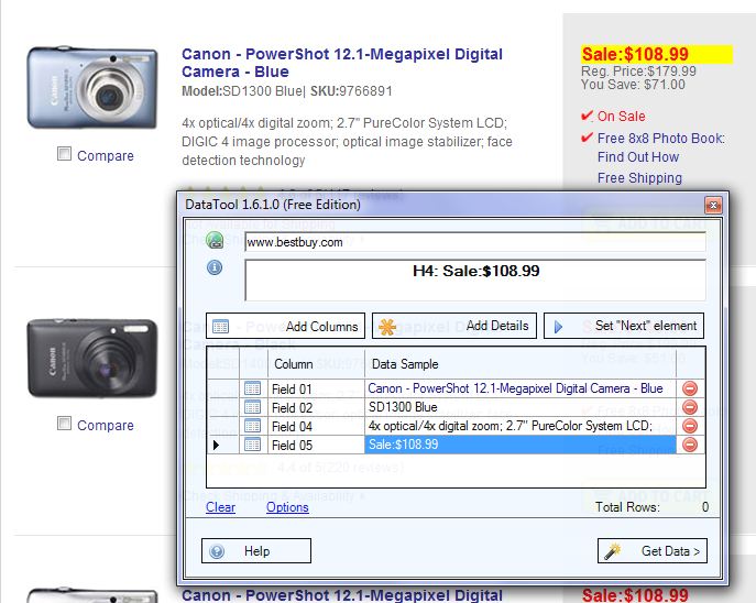 In this walkthrough we will use a product catalog (a list of Canon cameras) from www.bestbuy.com web site. To start the DataTool wizard click on the DataTool button in the toolbar area of Internet Explorer.